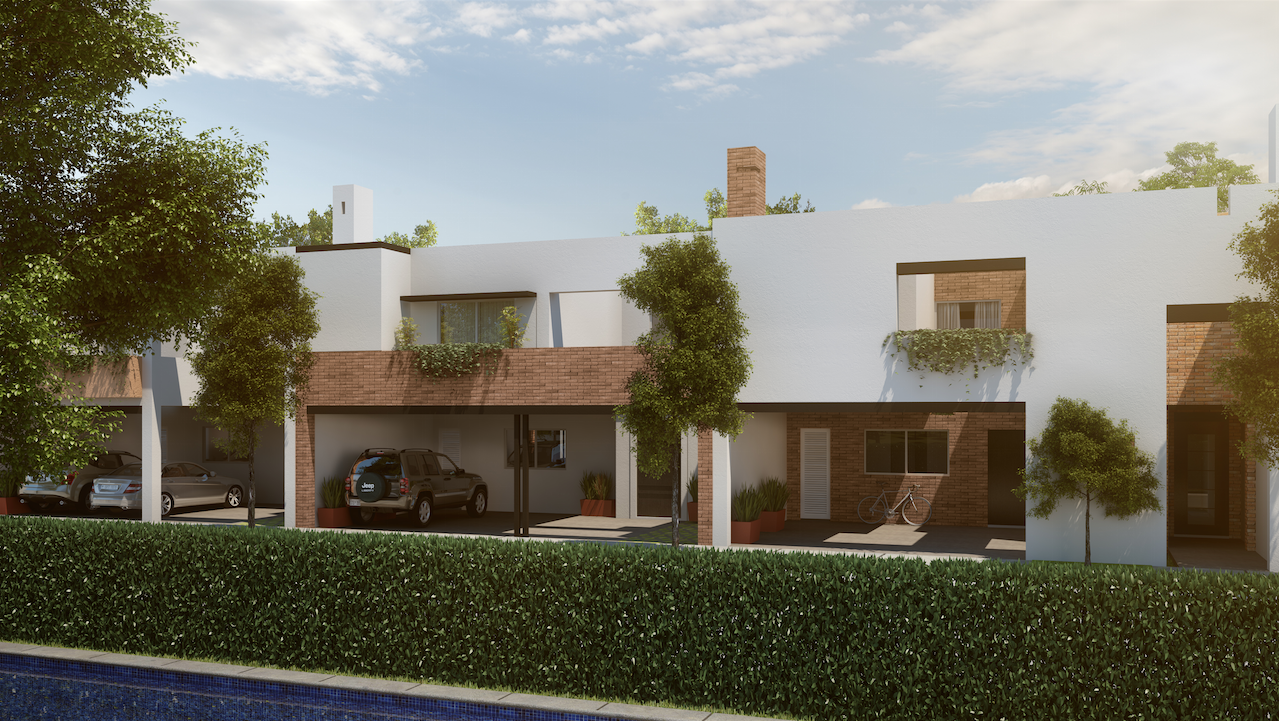 Proyecto residencial de arquitectura mexicana contemporánea, caracterizado por volúmenes limpios, muros blancos y arcos que aportan identidad y calidez al conjunto.