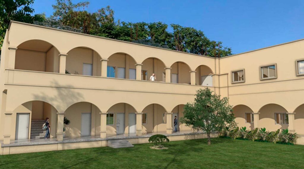 Dormitorios diseñados como espacios de alojamiento funcional y sereno, integrados a un conjunto arquitectónico de carácter institucional. El proyecto privilegia la claridad espacial, la ventilación natural y la relación con áreas verdes interiores, generando un entorno ordenado y confortable que favorece el descanso, la convivencia y la vida comunitaria.