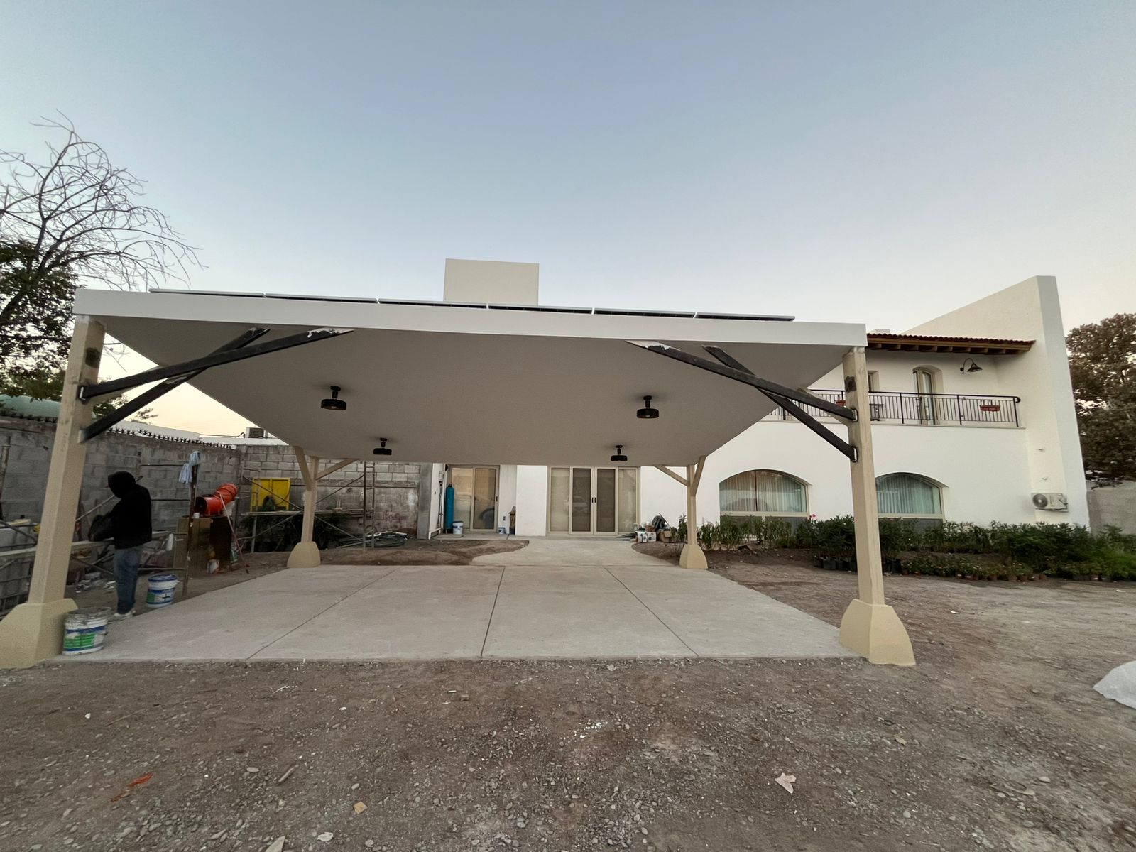 La intervención incluyó la construcción y supervisión integral de la obra, así como la integración de áreas exteriores, cochera cubierta y jardines perimetrales, priorizando funcionalidad, iluminación natural y soluciones estructurales adaptadas al entorno y al uso residencial.